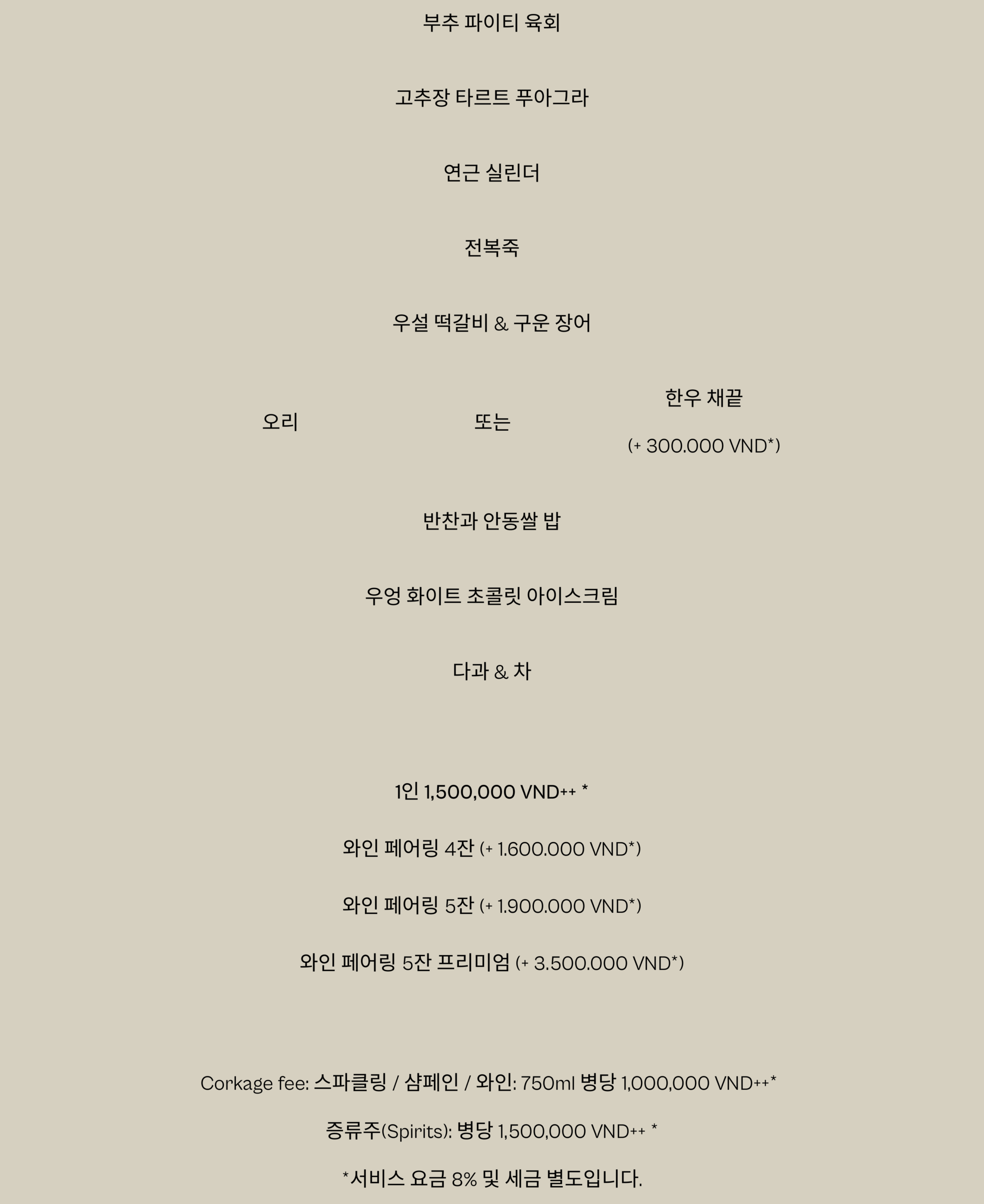 온빛의 모든 요리는 두 문화 속에서 오랜 시간 쌓아온 이해와 감각의 결정체입니다. 베트남의 풍토에 대한 존중, 그리고 한국적 뿌리에 대한 애정이 담겨 있으며, 플레이팅부터 식사의 리듬까지, 모든 것이 의도와 배려로 설계되어 우아한 분위기와 깊은 문화적 경험을 제공합니다.